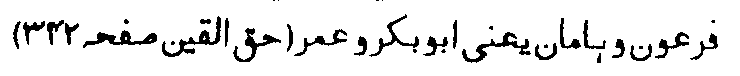 Anhuma). "... we find that it is necessary to accept the existence of a large trend, from the very lifetime of the Prophet, who inclined towards proposing the use of Ijtihad and circumstantial considerations in determining their interests, above strict adherence to the religious texts. " "This trend was represented by a daring group of important Companions like, Umar bin-al-Khattab, who disputed with the Messenger and made judgements contradicting the text in many subjects, believing that he had the right to do so." The type of 'Ijtihad' which the Shiahs attribute to Hadhrat Umar (Radiallahu Anhu), in particular, and to other Sahaabah, in general, is described in the following statement of Baqir Sadr: "...we mean by 'ijtihad' the making of judgements in contradiction to the text or acceptance of such a judgement." A king who pillages and plunders the wealth of a nation is supposed to lead a life of luxury-living in palatial mansions and palaces; relaxing in gardens and orchards; adorning himself in garments of silk, velvet and brocade; indulging in sumptuous feasts and extravagance. But history bears loud testimony to the austere, simple, in fact, life of extreme poverty led by our Ameerul Mu'mineen, Sayyidina Umar Farooq (Radiallahu Anhu). A dozen patches adorned his kurtah of coarse cloth. The frugality and austerity of Hadhrat Umar (Radiallahu Anhu) have already attained proverbial significance. The most ardent Sunni sympathizer of Khomeini will not fail in acknowledging this glaring historical fact. Yet the Shi'i priests accuse a Saint of such high, faultless and sterling attributes of having pillaged and plundered the wealth of the Ummah! HaqquI Yaqeen is another very highly placed book of Shi'i theology. The author of Haqqul Yaqeen is the same Mullah Baqir Majlisi, author of Zadul Ma'ad from which the lengthy fabricated narration (mentioned earlier) has been cited. In his book HaqquI Yaqeen, Baqi Majlisi cites a very lengthy narration in which Hadhrat Abu Bakr and Hadhrat Umar (Radiallahu Anhuma) are subjected to extreme vilification. Some excerpts from this fabricated narration of vilification are reproduced here. "After Makkah Muazzamah, Imam Mehdi will proceed to Madinah, the city of our grandfather, Rasulullah. At Madinah, he (Imam Mehdi) will demonstrate an astonishing act which will be a cause of great happiness for the Mu'mineen and a cause of disgrace for the kuffar and munafiqeen ... When Imam Mehdi will reach the grave of Rasulullah, he will ask the people: "0 people! Is this the grave of our grandfather, Rasulullah?" The people will say - "Yes, this is his grave." Imam Mehdi will then ask:" "Who are these persons who have been buried alongside our grandfather!" The people will say: "They are Abu Bakr and Umar, the closest companions of Rasulullah I" Imam Mehdi (inspite of knowing everything) will say: "Who was Abu Bakr? And, who was Umar? What was their excellence which necessitated their burial alongside our grandfather?"... "After three days, Sahibul Amr (the Shi'i title for Imam Mehdi) will order the walls to be broken and their bodies exhumed .. After the exhumation of their bodies, he will order their kafan to be removed and their bodies will be hung up on a dried out tree... " Imam Mehdi will command a dark storm to destroy those who loved them (i.e. Abu Bakr and Umar). Imam Mehdi will then order that the bodies be taken down from the tree. With the power of Allah, Imam Mehdi will restore them to life. He will order all mankind to gather. Then these two will be held liable for the sin of all oppression and kufr which occurred from the beginning of the world. They will be held responsible for all such sin ..... The sin of every murder committed, of every act of adultery committed, of every act of riba, of every act of haram wealth and injustice perpetrated until the advent of Imam Mehdi's appearance, will be charged against them (Abu Bakr and, Umar). Both of them will plead guilty to all these crimes ... Sahibul Amr will then command that they be hanged on a tree. He will command a fire to rise from the earth and devour them. A fire will (miraculously) rise and reduce them (Abu Bakr and Umar) and the tree to ashes.. " "Muhammad Rasulullah, Ameerul Mumineen (i.e. Hadhrat Ali), Fatimah Zahra, Hasan Mujtaba, Husain Shaheed, and all the sinless Imaams will come to life. All Mumins and all kafirs will also come to life. " "... The two (Abu Bakr